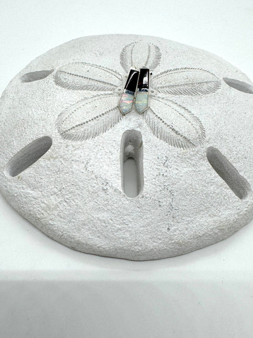 Opal hoop, post earrings -